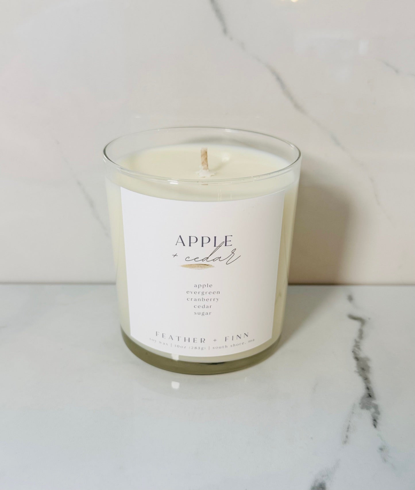 Breathe in the crispness of early fall mornings with the Apple + Cedar Candle. Top notes of juicy apple and bright mandarin awaken the senses, while a heart of fir, juniper, and tart cranberry adds depth and seasonal cheer. The scent settles into a comforting base of cedar and sugar, evoking cozy cabin vibes and warm afternoons by the fire.