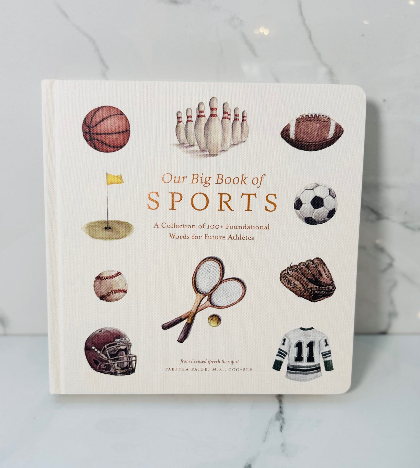 Designed by a professional watercolor artist and licensed speech therapist, Our Big Book of Sports includes charming watercolor illustrations and foundational words that will help you build your child's vocabulary. The durable materials and small book size also make them perfect for your baby's little hands.