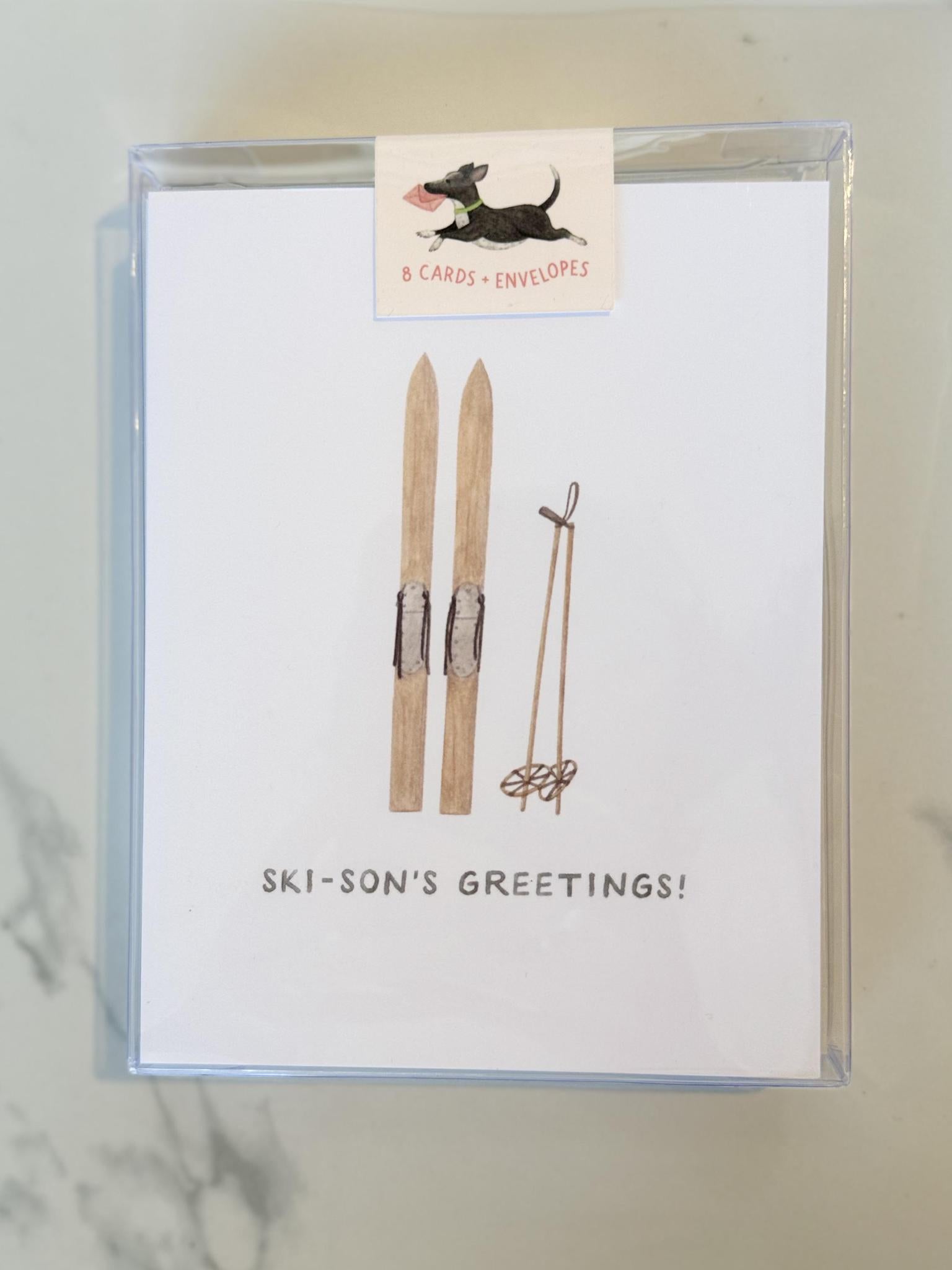 Celebrate ski season with a little vintage flair! The perfect holiday card for all the snow bunnies and powder chasers in your life. Set of 8 greeting cards and envelopes. Blank inside.