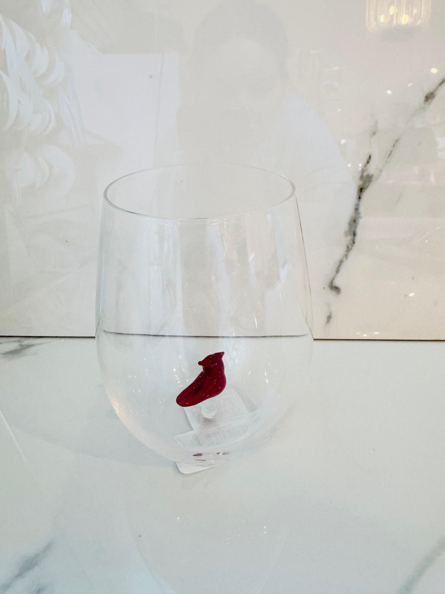 Crafted with care, this 20 oz. glass is adorned with a beautiful red cardinal, creating a delightful and nature-inspired design. Perfect for sipping your favorite wines all season long, this stemless glass combines style and functionality. Hand wash only.