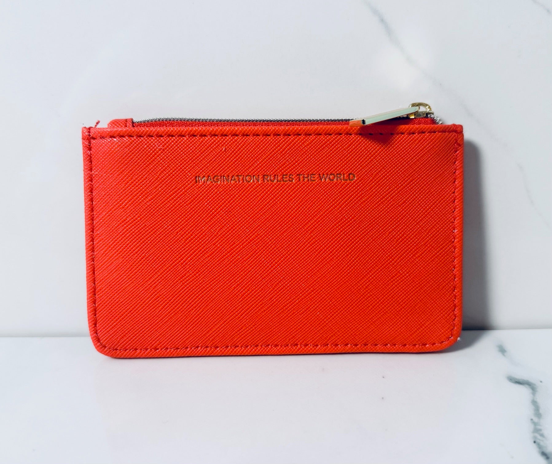 Carry all of your essentials in one place with this handy "Imagination Rules the World" card purse. The ideal size to slip into your pocket, clutch or even go bag free, this purse has compartments to organize cards, as well as a zipped section for coins. This purse is practical and can easily fit into your bag.