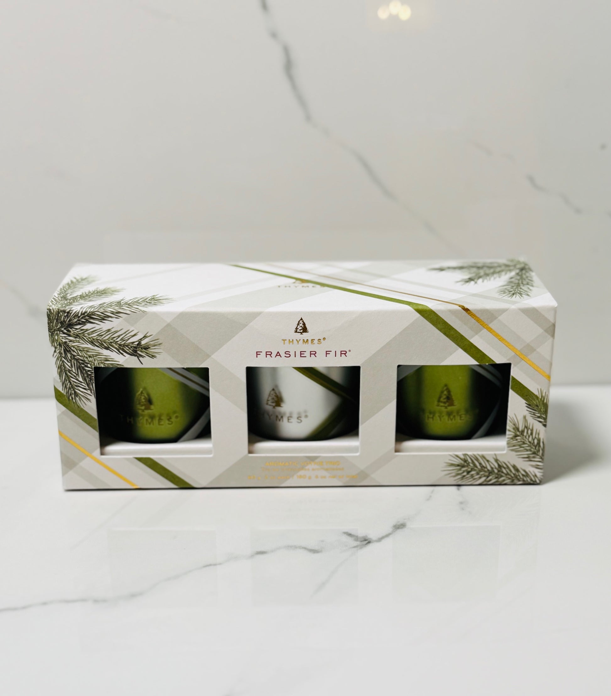 Elevate your seasonal decor with the Frasier Fir Frosted Plaid Votive Trio. This set features three votive holders adorned with a classic plaid pattern and frosted glass finish, perfectly diffusing candlelight to create a warm, inviting ambiance. Infused with the crisp, evergreen scent of Frasier fir, these votives enhance any space with subtle fragrance and elegant style, making them ideal for holiday settings or year-round cozy moments. Perfect holiday hostess gift.