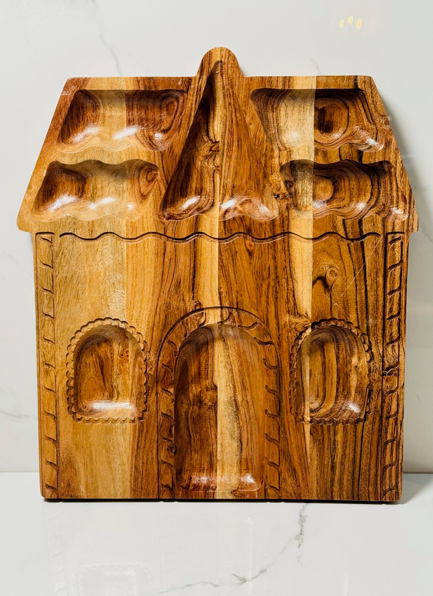 Crafted specifically for festive gatherings, the Gingerbread House Board provides the perfect foundation for all your holiday treats. This versatile acacia wood board can be used as a festive charcuterie platter, children’s snack tray, or decorative serving tray. Perfect for holiday gatherings, it also makes an adorable jewelry display tray and a cute Christmas gift. Food safe, hand wash, 12.5" x 14".