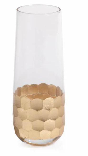 With a beautiful stemless design and a radiant gold finish, these flutes are perfect for toasting and celebrating and add a glamorous flair to your gatherings. Hand wash only, treat with care.