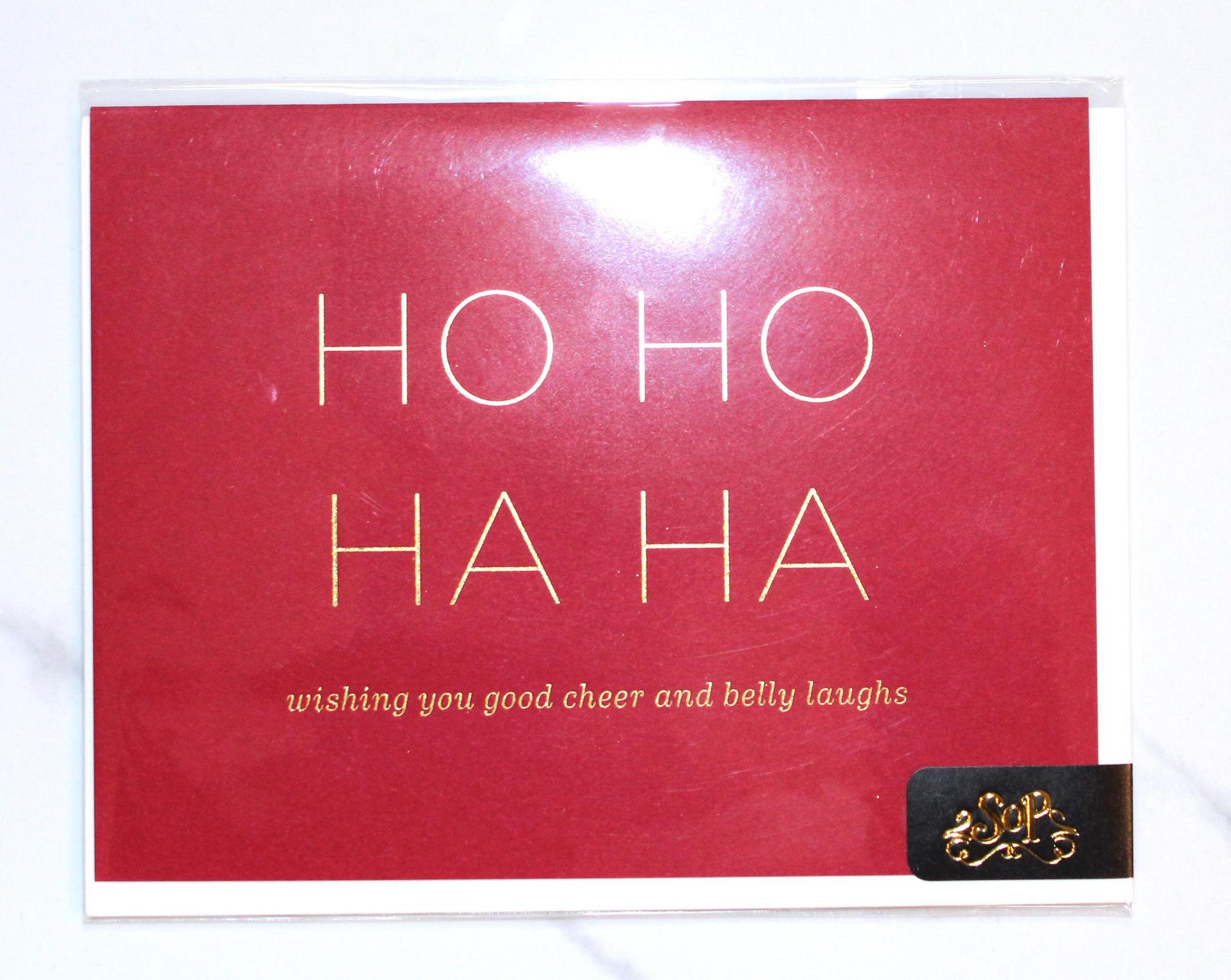 Front: HO HO HA HA wishing you good cheer and belly laughs, blank inside.