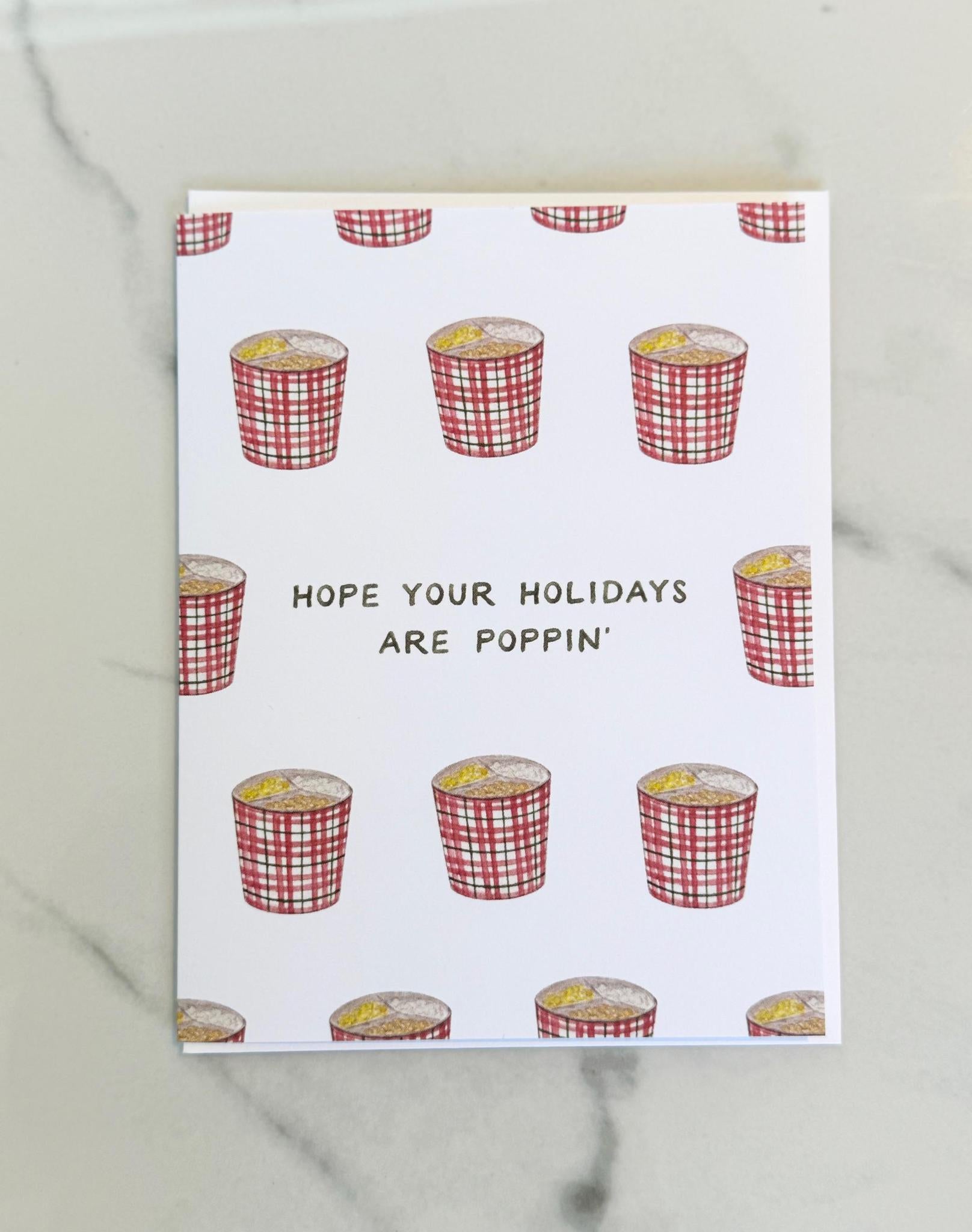This card is best paired with one of those iconic popcorn tins. No holiday season is complete without at least one! Blank inside.