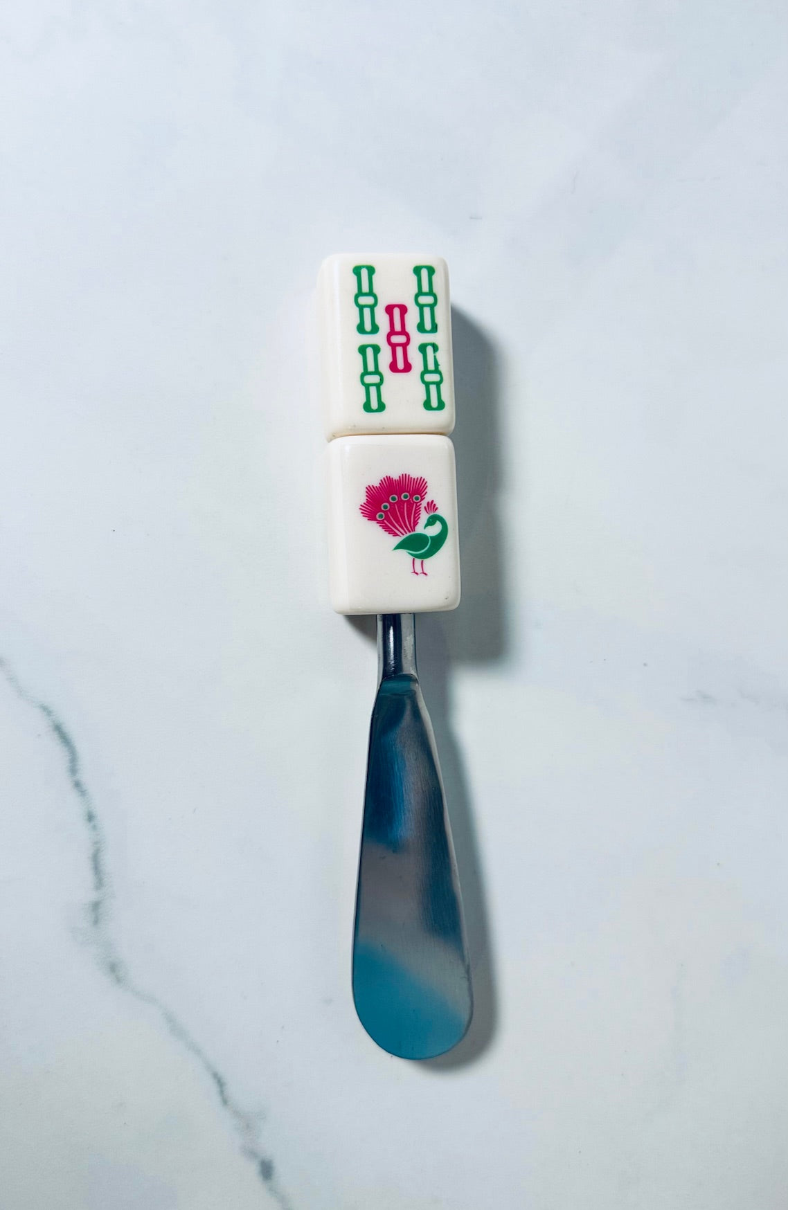 The Birdie Bam Mahjong Spreader features distinctive Birdie Bam artwork illustrated directly on the handle, combining aesthetic appeal with functional excellence.