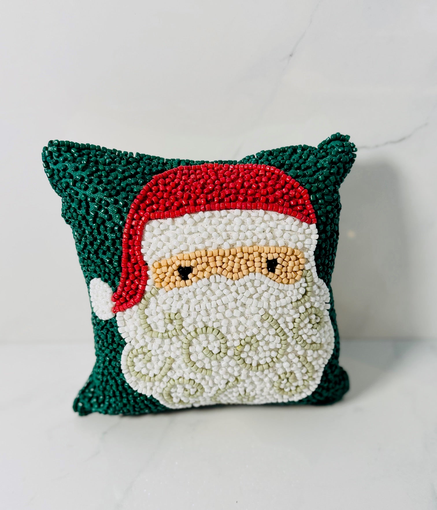 Bring festive charm to any space with the Santa Beaded Mini Pillow. Expertly crafted, this decorative pillow features intricate beadwork that highlights Santa's classic design. Its compact size makes it perfect for accenting sofas, chairs, or holiday displays, adding a refined touch of seasonal warmth and elegance to your decor.